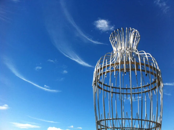 The work was conceived as a symbolic eel-trap or Hinaki; an anthropomorphic form of a female figure as a symbol of nurturing the environment. The work alludes to precious classical amphora.