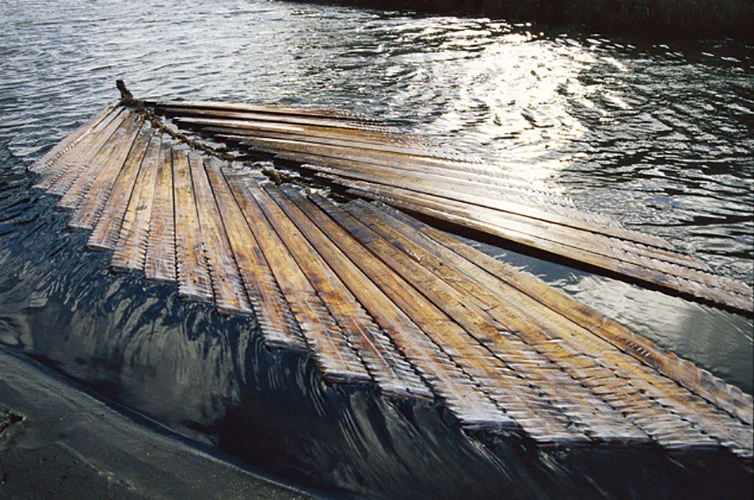 'In Raft, Styx (Sticks) it is the journey of the soul to the land of the dead, but also the death of the land, that is foregrounded, the journey of culture toward the death of nature. Virginia Kings works identify themselves with the cause of ecology and environmental ethics. A conscious biomorphism proclaims the splendour of generative nature. The harmonious balance of the elements, of material existence, has in all cultures been a metaphor for spiritual life.' Paul Judge, Tideline, A ten year survey, 1999.